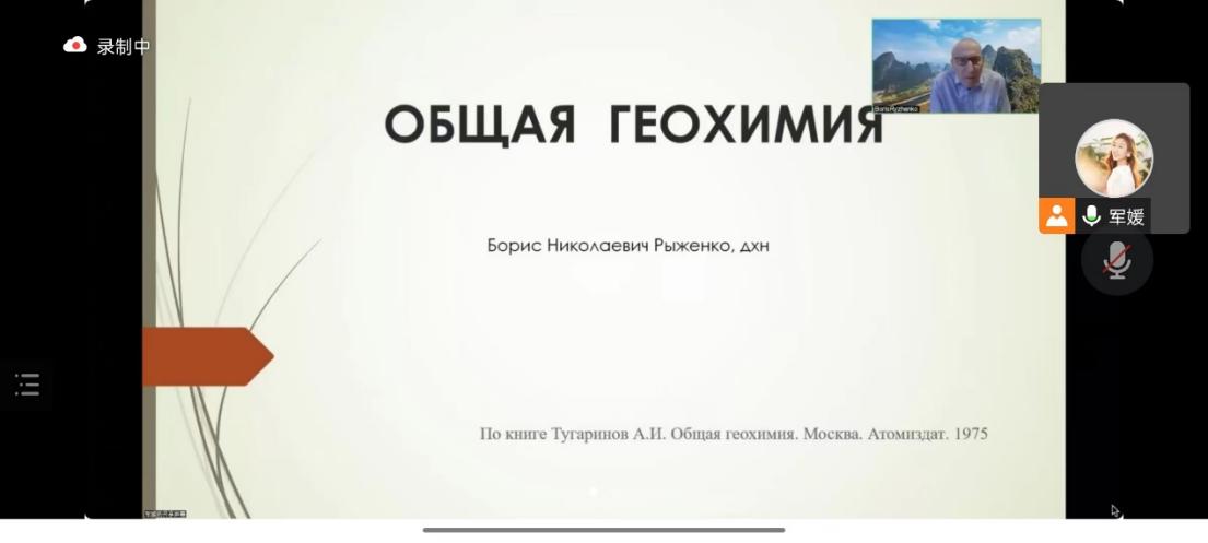 Б.Н.雷仁科教授在讲座中系统的讲述了普通地球化学的学术概念,有趣生动的为大家讲述了宇宙和地球的化学元素起源,及其在大气圈、水文圈、岩石圈的分布特性和规律;形成过程中发生的主要的化学反应和典型的晶体同构现象等。Б.Н.雷仁科教授通过例举科学家们的学习和工作方法,教育同学们要有严谨的科学钻研的态度,同时要博闻强识,勇于探索未知;并祝大家学业所成!