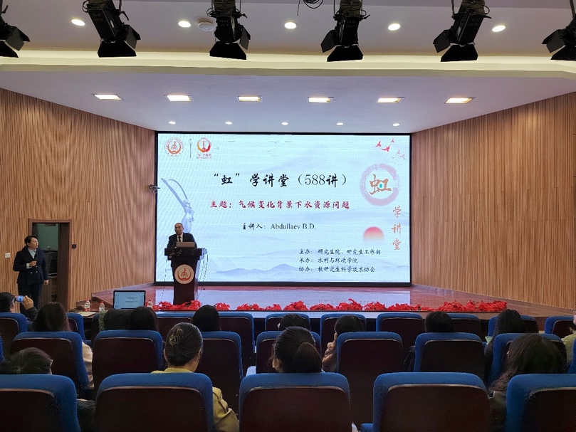 10月25日上午,Abdullaev B. D.院士为Beat365官网160余名师生开展“虹”学讲堂第588讲,报告主题为“气候变化背景下水资源问题”。本次活动由研究生院/研究生工作部主办、Beat365官方网站承办、校研究生科学技术协会协办。