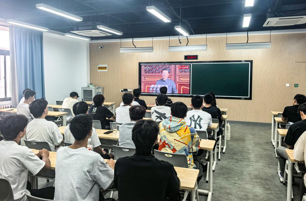 观看结束后,师生心情激动,深受鼓舞。大家一致认为,阅兵仪式不仅是一场国威军威的展示,更是一堂鲜活深刻的爱国主义教育大课。师生纷纷表示,作为高等教育工作者与学习者,应当主动聚焦国家重大战略需求,立足本职岗位与专业学习,将爱国热情转化为实干担当,以科技创新服务国家发展,用实际行动践行“科研报国、教育强国”的初心与使命。