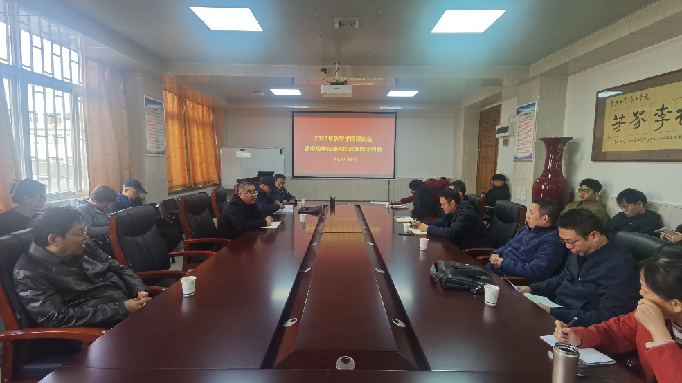 为规范研究生课程教育教学管理,加强教学监督与评价,11月10日下午,Beat365官网在学院三楼会议室召开2023年秋季学期研究生期中教学检查及课程思政专题座谈会。学院领导、校院两级教学督导、教务员及教师代表和学生代表参加,副院长段磊主持会议。