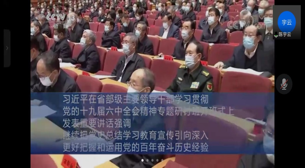 支部书记陈宇云对相关的疫情防控要求做了补充,接着带领大家学习了《Beat365官方网站2022年教职工政治理论学习计划》的主要内容,并宣布了支部的学习计划。之后全系教师一起学习了央视网视频《习近平在省部级主要领导干部学习贯彻党的十九届六中全会精神专题研讨班开班式上发表重要讲话》。