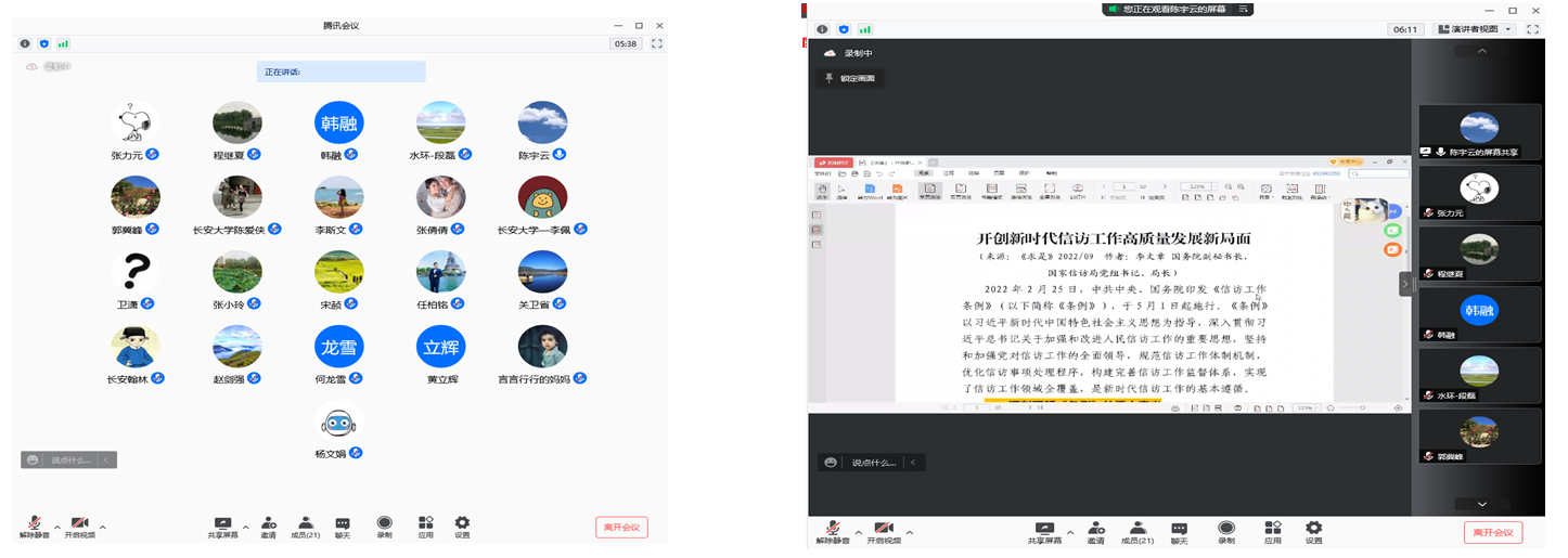 然后,支部书记先带领大家一起观看了央视网关于《信访工作条例》的视频,接着带领学习了《信访工作条例》全文和《求是》杂志上的“开创新时代信访工作高质量发展新局面”一文。