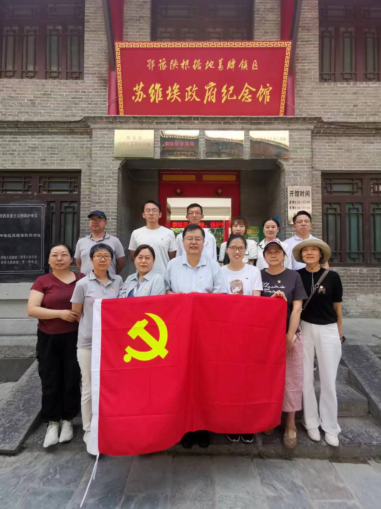 活动第二站到达了葛牌镇区苏维埃政府纪念馆。在解说员带领下,全体党员观看纪念馆展厅内的历史照片和实物,深入了解了西安地区第一个红色政权建立的光辉历程和红二十五军传奇历史,深刻了解鄂豫陕革命根据地的创建和发展历程,重温了革命先辈艰苦卓绝的峥嵘岁月。