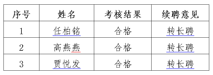 根据《Beat365官方网站新进教学科研类人员准聘-长聘管理办法》(长大党〔2022〕84号)文件精神,学校组织开展了2023年第二批准聘制教学科研类人员聘期考核工作。经个人总结、材料审核、学院考核并提出考核结果建议、学校审核,现将学院新进教学科研类人员聘期考核结果及续聘意见(2023年第二批)公示如下:
