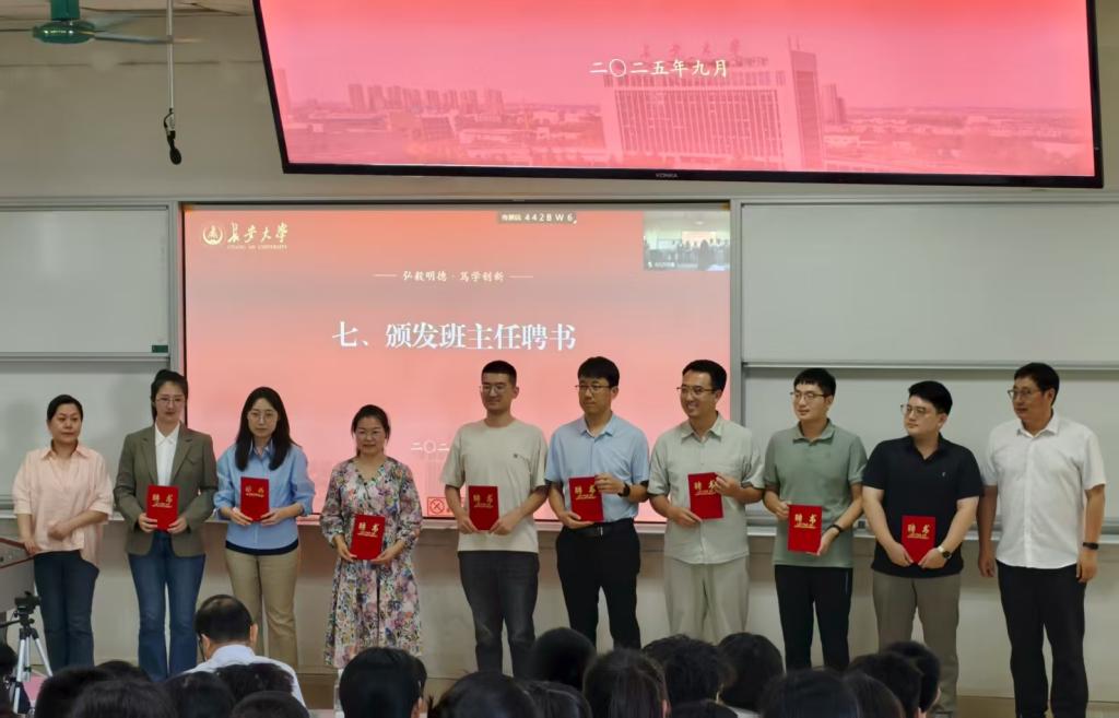 典礼上,学院党委副书记、纪委书记、副院长荆琳和副院长张洪波为新生班主任颁发聘书。典礼后,各班班主任组织新生见面会和入学教育。