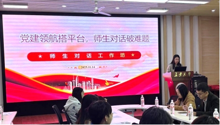 在交流互动环节,与会同学围绕“提升就业竞争力、提高论文与专利产出、选择适合的研究方向、平衡好科研项目、生活、实习等之间关系、导学关系相处之道等问题”等话题进行深入探讨,教师党支部代表陈洁、何晓东、李婉歆老师结合自身成长经历进行细致解答和针对性指导。