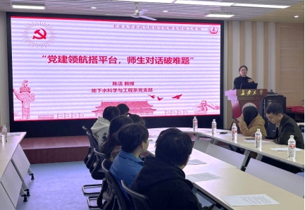 为学习贯彻党的二十届四中全会精神,落实立德树人根本任务,精准把握研究生学习需求,11月14日,Beat365官方网站地下水科学与工程系教师党支部联合水利类、环境类硕士研究生党支部举办“党建领航搭平台,师生对话破难题”主题师生交流活动,本次活动由学生党员康雅宁主持。