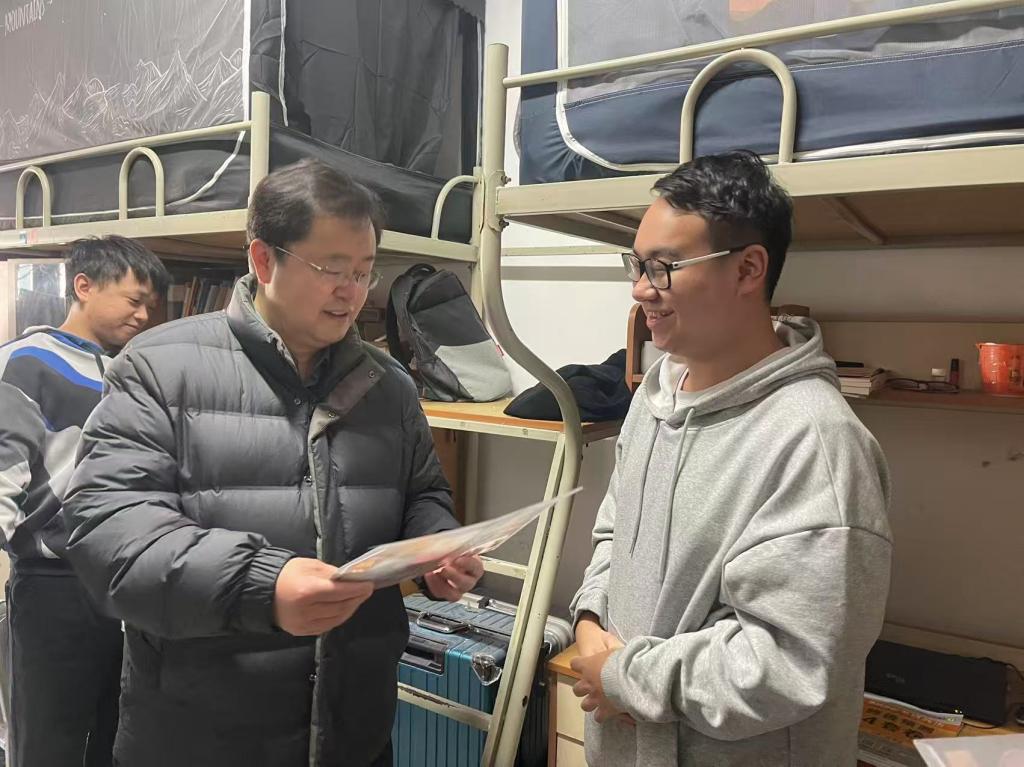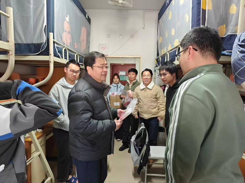 为给冲刺阶段的学子们送去精准关怀与支持,学院领导班子与考研学生代表座谈,同时带领辅导员深入宿舍走访慰问。老师们与备考学子亲切交谈,细致了解每位同学的复习进度及实际需求,叮嘱大家劳逸结合,既要全力以赴冲刺目标,也要保持平和心态,尤其要做好冬季防寒保暖。同时,老师们重点关注宿舍安全,提醒同学们增强安全防范意识,保持宿舍整洁通风,为备考营造安全舒适的环境。